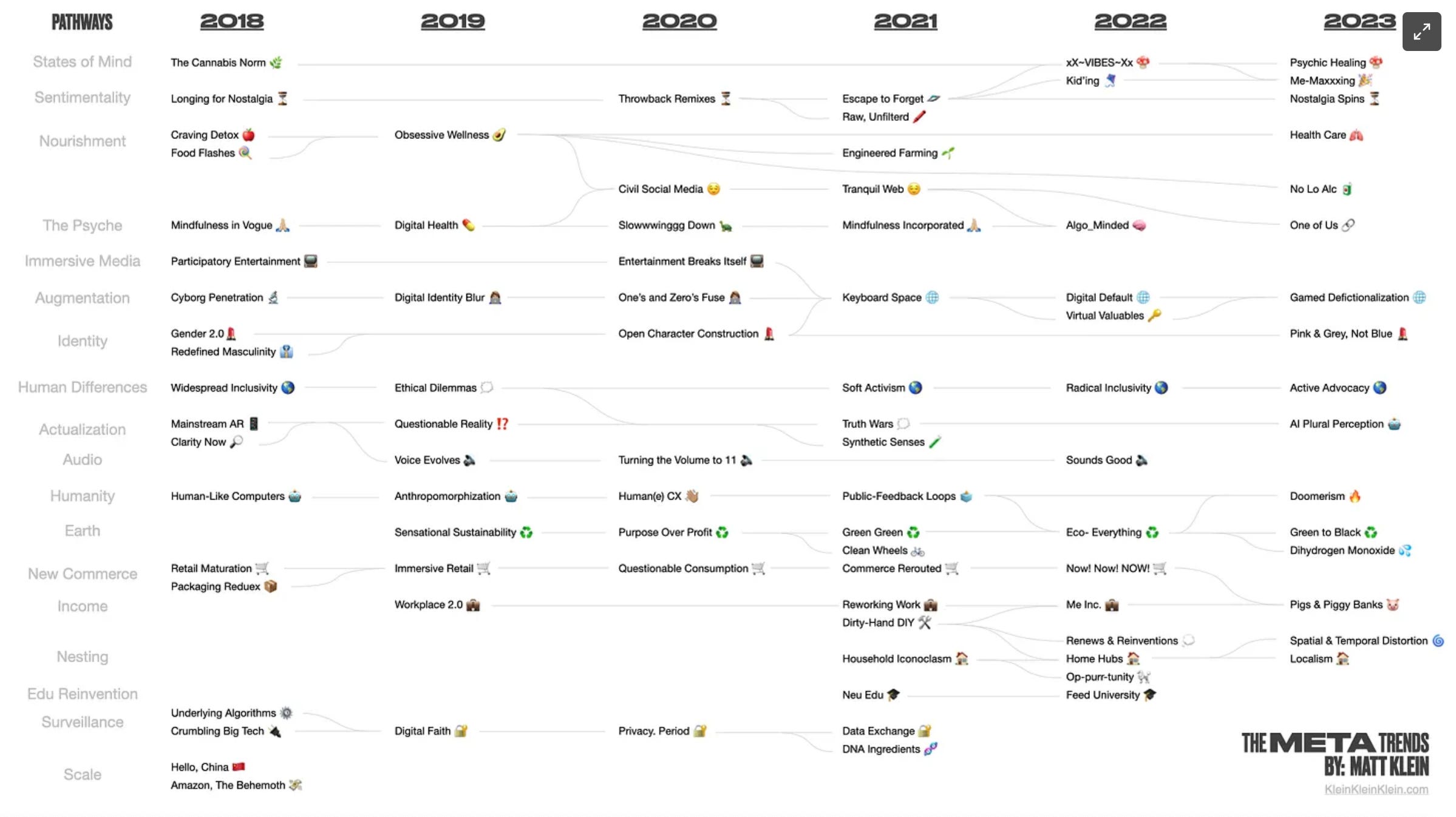🥭✨The Nexialist #0106META trending trends: 2023 | tech trends | centaur mindset | enshittification lifecycle | mangoes as a propaganda tool | LLYLM | interlingua | santas almas benditaswelcome to another week of sweet, juicy brainsparking content, The Nexialist hello, folks! i hope this e-mail finds you also sweet and juicy! this week the nexialist is a bit more reading-heavy, so take your time or save those articles/reports for later. read until the end for some delicious music. são paulo has been treating me well and just being here has been healing something inside me. i missed it and the people here more than i thought. now… enjoy this week’s content 🫀✨ 1 year ago » 🧠✨The Nexialist #0056 : Brainspark Thread | Liveware & Malleability | Tupperware | Jessie Ware | Miro Academy | Question Burst | Learning a Language | Shinigami Eyes 2 years ago » 🧠✨The Nexialist #0005 : Queer the Future | Curation and Synthesis | Meta Trending Trends | Future of Fashion | Sevdaliza | RIP SOPHIE and Brega Funk 📈META trending trends: 2023Matt Klein’s meta-trending trends report is one of these things i wait for the whole year, so it’s always an event when it comes out. in the midst of the flood of trend reports coming from every corner of the world, this report takes 50+ of the most relevant reports and checks for similarities, grouping them into 16 trends. it is great because it is cross-cutting, it has a clear methodology, and it lets us see where it’s coming from the past year and where it’s going. also, the commentary on the number of reports that come out every year: what is original? what is the methodology behind these reports? what happened to last year’s trends? i keep it on my favorites, as it is a great starting point for my projects and my work: it’s a way to synthesize many reports while also inviting us to question what they are not showing from the fringe. read the whole thing, it’s worth it. Read: The META Trending Trends: 2023 - by Matt Klein - ZINE 🦾tech trendsvisual capitalist brought us a visualization from CB insights tech trends report, which is based on global tech investment and can be a great thermometer for what is going on in this segment. you can read more about it (and 3 more detailed trends) here. 🤖centaur mindsetmichell zappa, one of the great minds behing envisioning (who i work with), wrote a thought piece on “using intelligent technologies responsibly.” it is a constructive and thoughtful gem in the middle of this generative-AI takeover discussion. some great questions are brought in an effort to help people and companies start with the right questions when developing AI strategies. it’s worth the read.