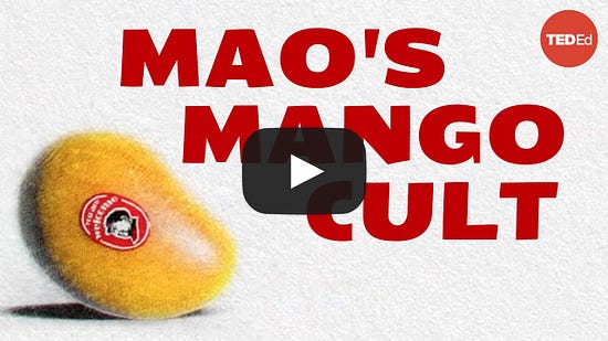 read: tiktok’s enshittification by cory doctorow 🥭mangoes as a propaganda toolone thing i was waiting for when i arrived in brazil: to eat mangoes. they are the sweetest and juiciest here. i guess my algorithm saw me shedding a tear when i ate the first one, because this showed up in my feed: how mangoes turned into a propaganda tool in china. i mean, i would have fallen for it. also, the animation is just so mesmerizing to watch.