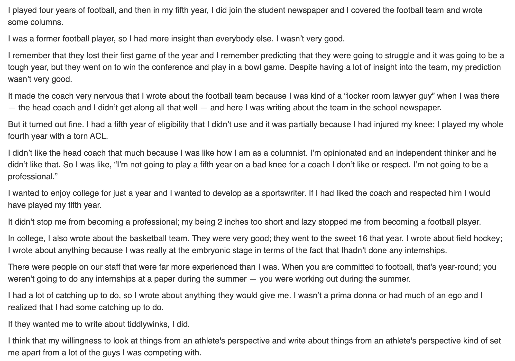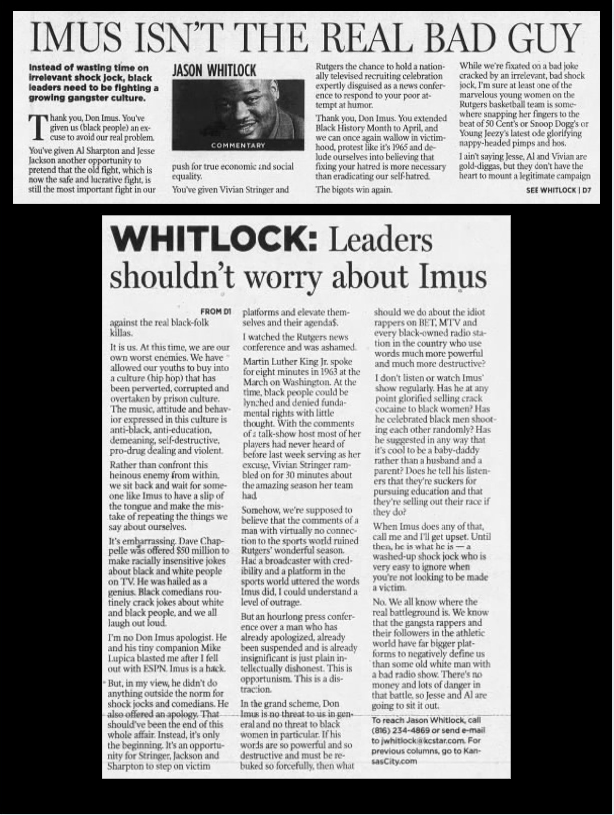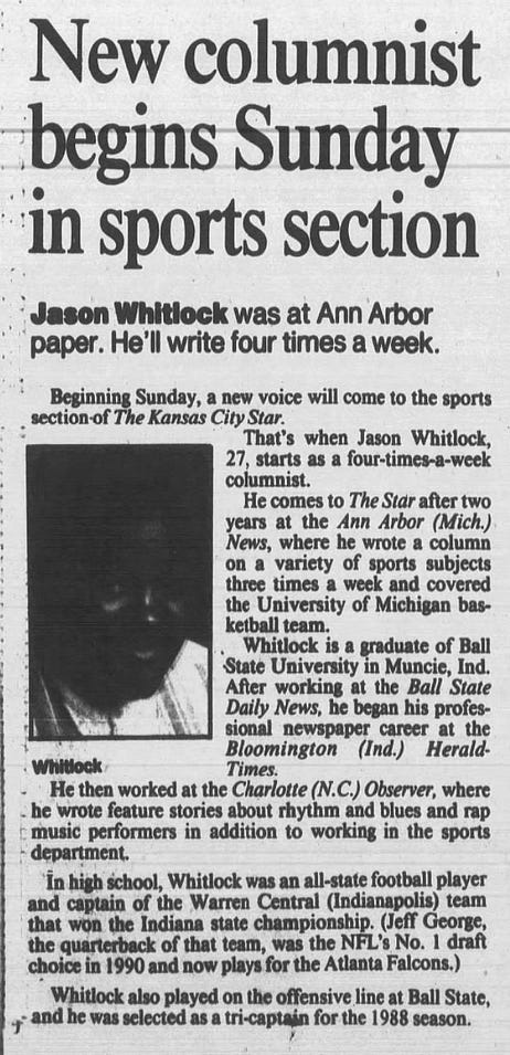 The Yang Slinger: Vol. XXXIIJason Whitlock was once one of the nation's most influential sports columnists. Then he lost his mind and turned into racist conservative America's proof that they can't possibly be racist.Once upon a time, back when newspapers were the stuff of print and ink, and the echo of one plopping at driveway’s edge was pure bliss, Jason Whitlock ranked among America’s most influential daily sports columnists. I know … I know … That sounds preposterous. Jason Whitlock? The side-of-the-road lamp shade who makes Tucker Carlson’s nipples twitch? The sad sack who presented Donald Trump with the journalistic equivalent of a blowjob/anal cleanse in this 2020 non-interview at the White House? The dumped-by-everyone perpetual free agent who recently pointed his finger toward single Black women for Memphis police officers murdering Tyre Nichols? Journalism’s merging of a watery stool and Aubrey Huff? That Jason Whitlock? It’s true. The man we see before us in 2023 is not the man we once knew. Or at least he’s not the man we thought we once knew. Today, Jason Whitlock is this … ![]() The backlash against Tony Dungy is well-orchestrated and not remotely organic. The motive is to outlaw a biblical worldview. The anti-God agenda is so strong and obvious. I'm so sick of alleged Christians sitting silent while someone like Tony has his character assassinated. And this … And this … ![]() Hmm. My guess is the Oprah interview of Damar is gonna come at a hefty price. He's unlikely to ever play football again. Book, movie, interview(s) are income streams. The more mystery around Damar the more valuable his story is. Business decision. ![]() Island Boi Brüce @Fishing_Huuker And this (which he posted just yesterday … ![]() We have embraced a culture that does not develop or produce women worthy of, or capable of, a successful marriage. That’s just a fact. The last one is actually my personal favorite—written by a middle-aged man who probably hasn’t held a woman’s hand since the Clinton Administration and blushes at the word, “boobies.” But I digress. Whitlock works for a vomit-soaked gas station urinal cloth called The Blaze, and specializes in allowing racist whites to justify their racism with the ol’ “I can’t be racist. That big Black feller says everything I’m thinking …” He’s on Tucker Carlson’s speed-dial whenever Fox News’ Goebbels needs verification that minorities (save for Whitlock, of course) are violent and destructive. He is a personification of the sell-out. Not in the racial sense of the word (that’s not my judgement to make), but of one who abandons principle and dignity for clicks and likes and pats on the head. “He’s burned every bridge he ever walked on,” one former colleague told me. “He’s got nothing left.” “It’s painful as hell to see how he talks about Black people,” added an African-American sports journalist. “Especially how he talks about Black people in spaces that don’t give a shit about Black people to begin with. But this is his lane now. It’s the only one he has left. And I’m not saying you can’t be critical because that is absolutely necessary. But there’s a stark difference between being critical and being performative on some modern day minstrel show shit. I saw what he saw about the single Black mothers and Tyre Nichols murder and I’m not gonna lie, Jeff. I almost threw my phone through the wall.” It’s a saga that brings me no joy. Jason Whitlock is the once-exceptional athlete who blows out a knee, bats .210 at Double A Midland, turns to the bottle and winds up shaking hands in the lobby of the West Siloam Springs Cherokee Casino. Day after day, week after week, year after year. He’s what you get when notoriety trumps contentment; when a fading spotlight scares the shit out of you. In short, he’s a warning sign to all media members. Don’t follow this path.¹ An Indianapolis native raised by a single mother in a small apartment off East 38th Street on Temple Avenue, Jason Whitlock was a sports media kid from the very beginning. According to a 2015 Indy Star profile, back in the day he kept old Sports Illustrateds stacked around his bed, and regularly called into local sports radio shows to slam/praise his beloved Pacers. He made the jump into writing as a fifth-year college student at Ball State University, when he went from playing offensive line for the Cardinals football team to joining the student newspaper (the Ball State Daily) and covering the Cardinals football team. He recalled the experience in a fascinating Povich Center interview … Whitlock entered the newspaper business in 1989, earning roughly $5-per-hour to cover preps for the Bloomington Herald-Times before spending 1 1/2 years at the Charlotte Observer. He quickly jumped to the Ann Arbor News, where for two years he covered the University of Michigan’s men’s basketball team and dabbled in column writing. He was a fast, dependable wordsmith with an unmatched knowledge of sports and a PhD in locker-room dynamics. In 1994, the Kansas City Star made him a lead sports columnist. This, from the Sept. 27, 1994 sports section … Whitlock’s hiring was no small thing. First, at 27 he was one of the nation’s youngest newspaper columnists. Second, in an industry plagued by its strict adherence toward whiteness, he was a Black man with a pen and opinions. The Star didn’t bring in Whitlock to double as a shrinking violent. No, its editors wanted him to be bold and controversial and provocative. A midwestern Mike Lupica. So that’s what he did. Whitlock has long listed his journalism hero as Mike Royko, the late Chicago newspaper columnist who specialized in rolling up his sleeves and punching assholes in the noses². Royko was certainly a good writer, but his superpower was mojo and oomph and snarl. He was a Chicago guy repping his city. You fuck with Mike Royko, there's gonna be a problem. W