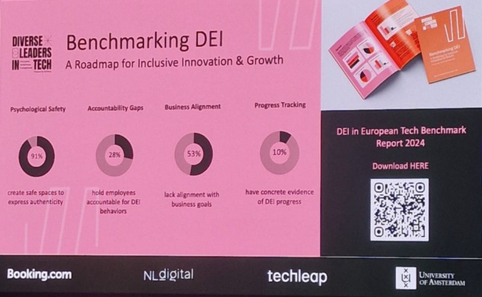 brainsparks: artificial intimacy (tn#168), non-toxic social media (tn#121), Business Needs New Frameworks (tn#68) 📈data-driven diversity and inclusioni arrived at this panel by chance, and got a nice report from it. leaders from different companies talked about how to leverage data to foster diversity and inclusion. they release a report about it (haven’t seen it yet, but the talk was quite interesting). ingrid tappin managed the panel, and i loved how she was quite direct asking the other leaders how they were working DEI in their teams. they talked about recognizing and aknowledging the people in the team, promoting them (if that’s what they want), and understanding what they need. something that stayed with me, shared by adrienne enggist from booking.com: