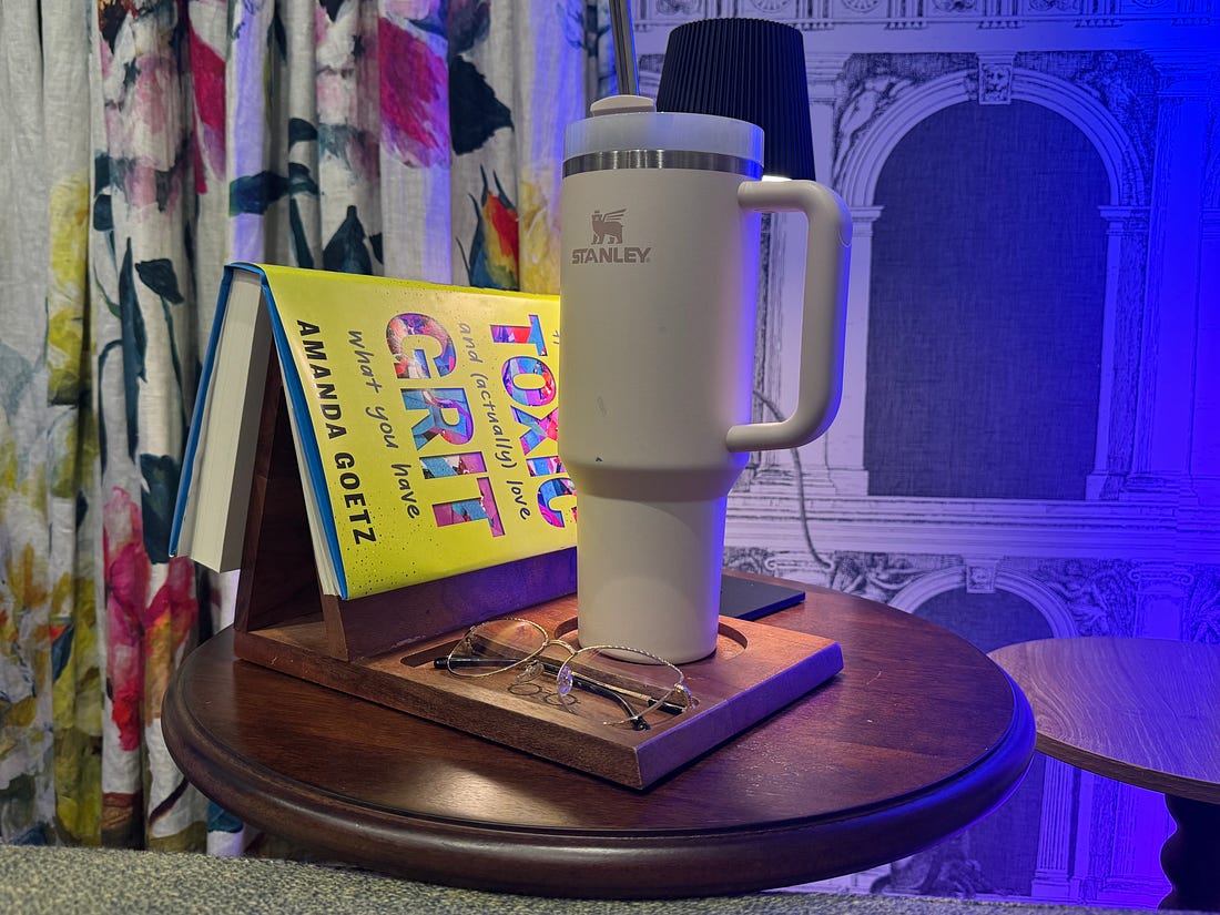 Another bookish gift I love and use every day is my Book Nook. I’m trying to read more physical books and it keeps everything I need (water, my reading glasses, and my book right where I left off) within reach.